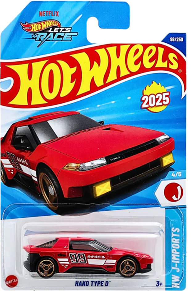 Turn heads on the track with the Hako Type D, a bold tribute to classic Japanese street racing culture. Inspired by the iconic “Hakosuka” era of vintage performance cars, this ride blends retro boxy styling with modern Hot Wheels flair. With detailed graphics, flared fenders, and a tuned-up stance, the Hako Type D is built to honor JDM roots while tearing up the pavement.