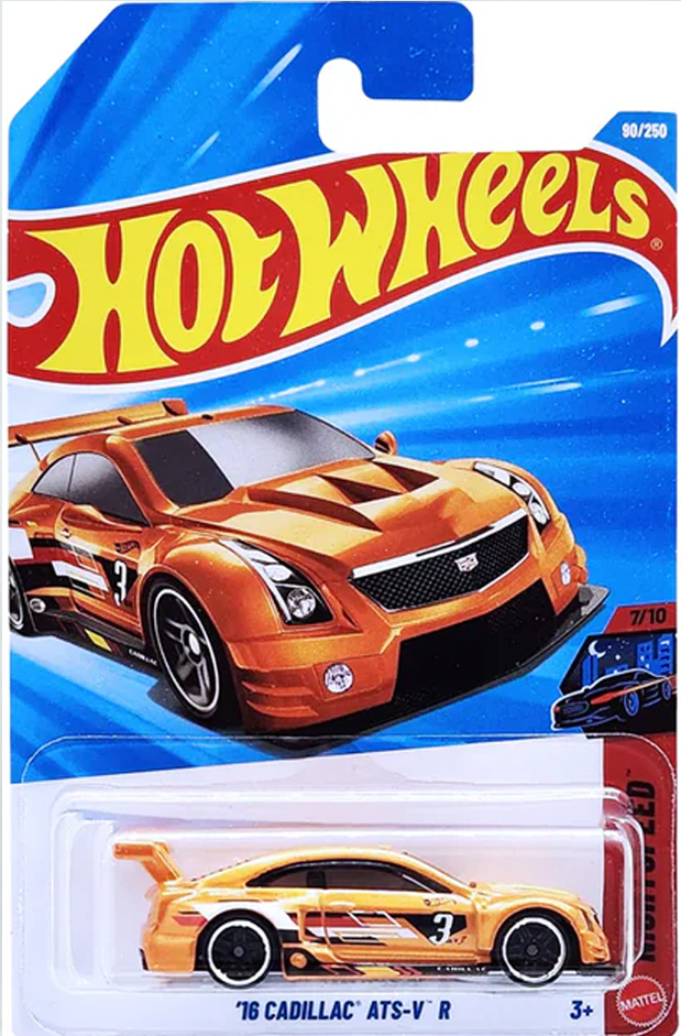 The Hot Wheels ’16 Cadillac ATS-V R (Orange) (1:64 scale) is a striking diecast model inspired by the high-Performance Cadillac ATS-V.R, built for professional GT racing.This miniature showcases aggressive race styling with a wide body kit, large rear wing, aerodynamic detailing, and bold racing livery. Finished in a vibrant orange color, it stands out on display and captures the essence of Cadillac’s motorsport engineering.Crafted with a diecast metal body and detailed design elements, this casting is a favorite among collectors, especially those interested in race cars and track-focused machines. It has appeared in various Hot Wheels series, including racing-themed and performance lineups, with some versions featuring premium wheels or enhanced detailing.