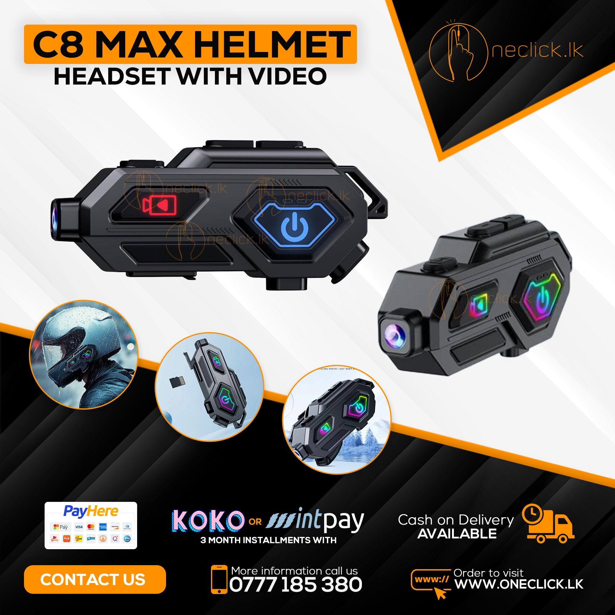 The High-quality C8 Max Helmet Headset with Video is the ultimate all-in-one Bluetooth communication system for motorcyclists, skiers, and adventurers. With a built-in HD camera, Bluetooth 5.3 technology, intercom support, and IPX6 waterproof protection, this smart headset is designed for high-speed communication and real-time video recording — without the need for separate devices For the lowest price in sri lanka